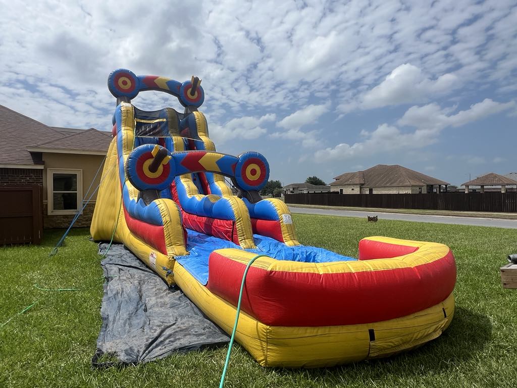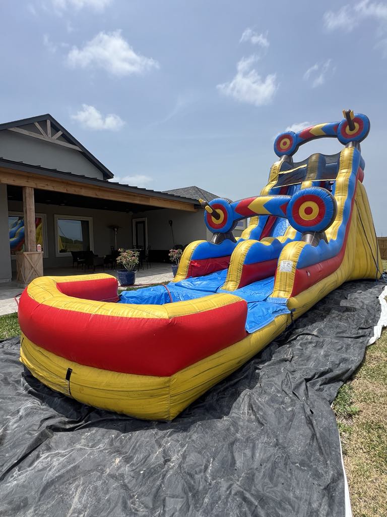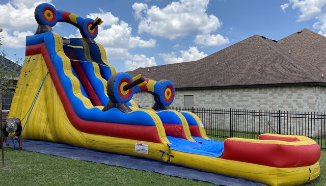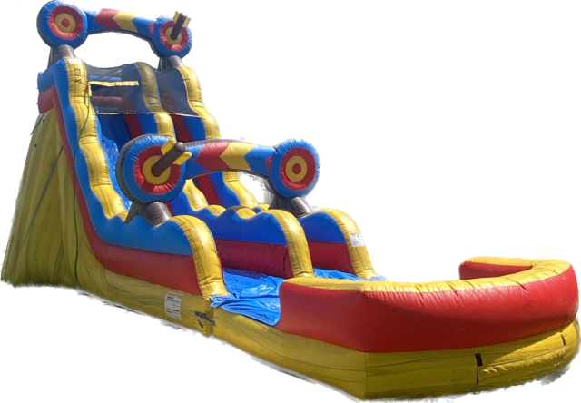 The 22FT Target Dry Slide, available for rent at $245.00, offers an exciting and challenging experience for participants aged 6 years and up. Standing at an impressive 20 feet in height and measuring 11 feet in width and 36 feet in length, this dry slide provides an exhilarating ride that ends with a safe landing. The setup area required is 22'H x 13'L x 38'L feet, with just one electrical outlet needed for operation. Perfect for birthday parties, school events, and gatherings seeking thrills and adventure, the Target Dry Slide combines excitement and safety, ensuring that participants have a fantastic time while staying entertained and active.
