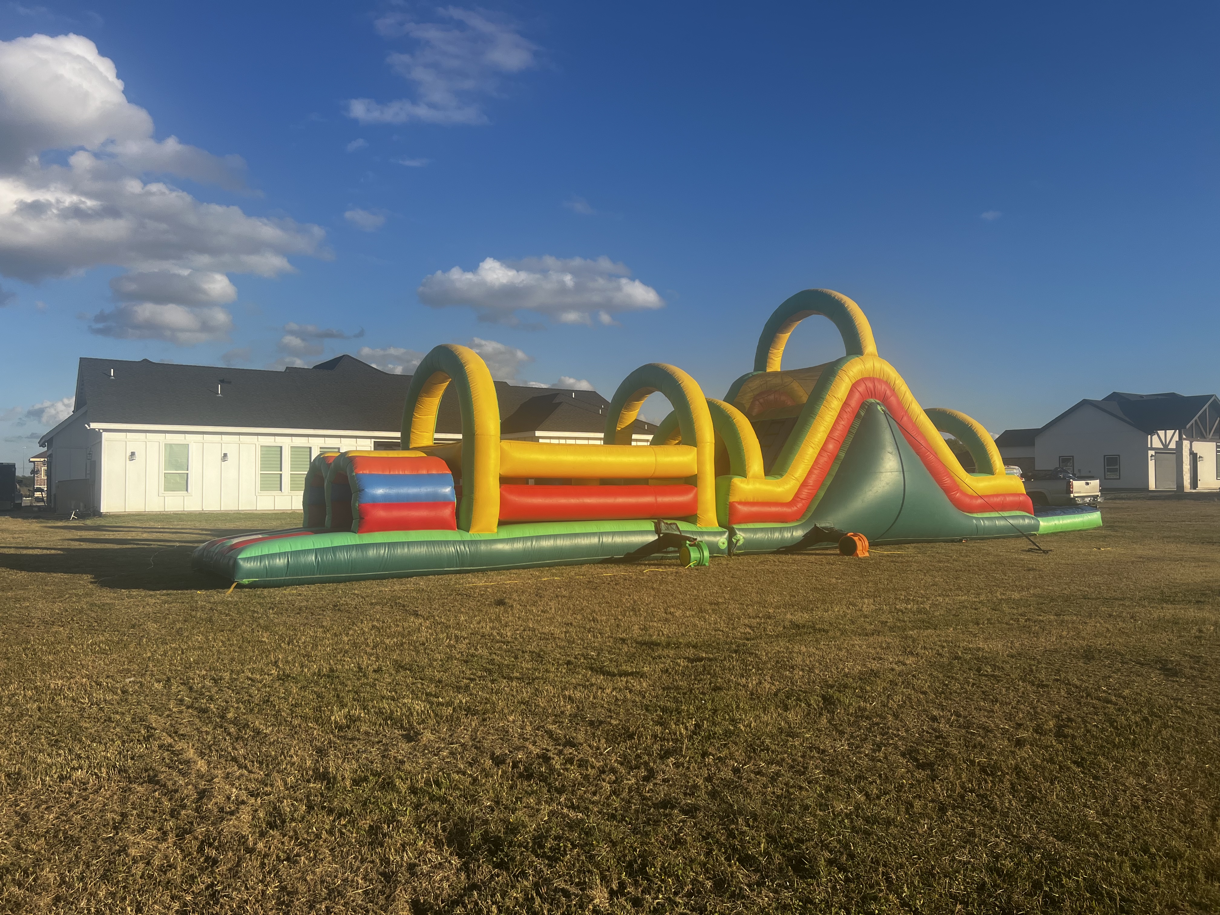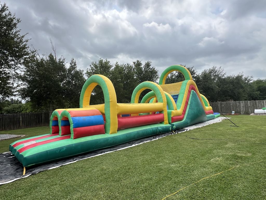 Embark on an adventure of courage and skill with our "Fearless Maze Obstacle Course Dry." This inflatable marvel challenges participants with a thrilling maze design, spanning a heart-pounding journey through twists, turns, and obstacles. Standing tall at an impressive height, the course ensures a daring experience for those seeking excitement. Ideal for various events, this obstacle course offers an adrenaline-fueled combination of physical prowess and strategic thinking. Navigate through the twists and turns, conquer challenging barriers, and emerge victorious. Packed with excitement, the "Fearless Maze Obstacle Course Dry" is available for rent at $330.00, promising an unforgettable and fearless experience for participants of all ages.