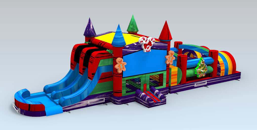 Get ready for non-stop fun with our brand-new 50ft Obstacle Course with Bounce House Combo! This massive inflatable is 50 feet long and 12 feet wide, packed with excitement from start to finish. It features double lanes and a double slide, so two participants can race side by side through all the obstacle challenges, pop-up pillars, tunnels, and bounce area — keeping everyone active and entertained.